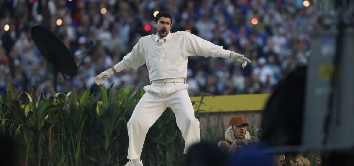 Durante o Super Bowl, no domingo (8), Bad Bunny recebeu holofotes do mundo todo, sendo o primeiro artista de língua espanhola a se apresentar sozinho no torneio, em uma performance repleta de referências da cultura latino-americana. O porto-riquenho assumiu a marca de show de intervalo mais assistido da NBC com 135 milhões de visualizações.
